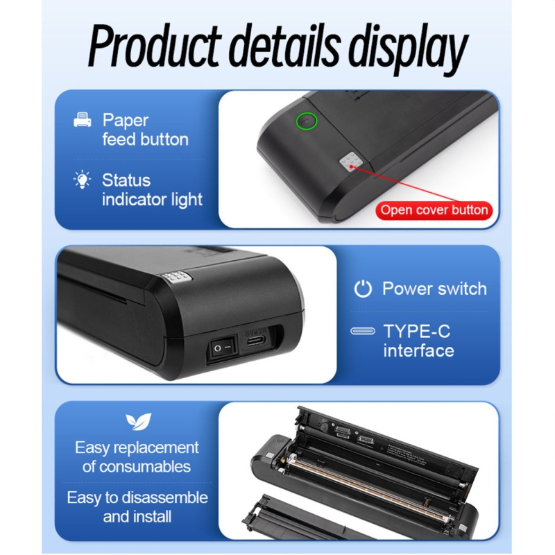 •    Tên sản phẩm: Máy in di động A4 Bluetooth XL-P808