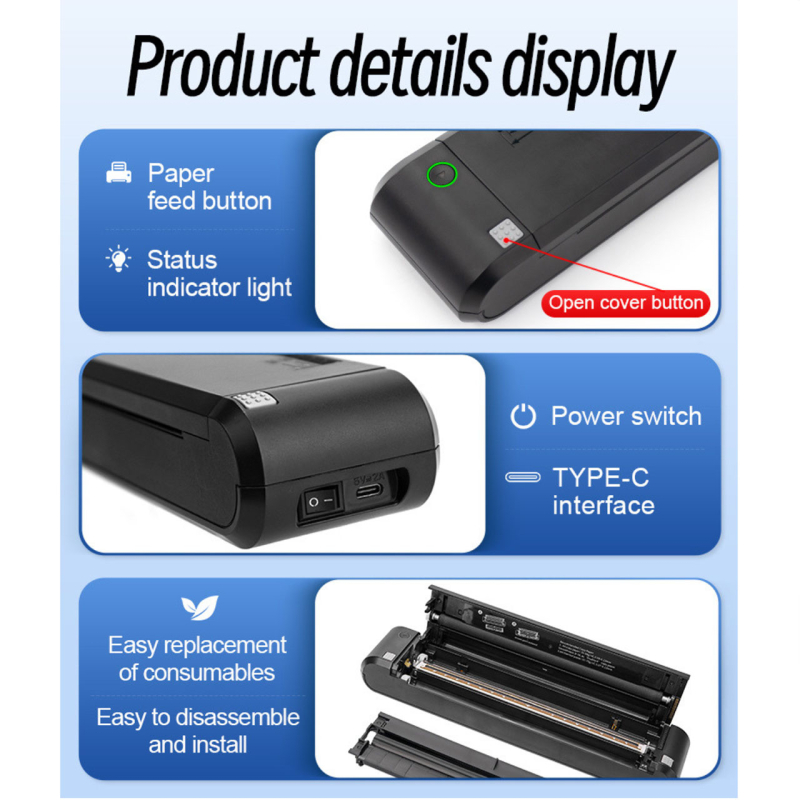 • Tên sản phẩm: Máy in di động A4 Bluetooth XL-P808